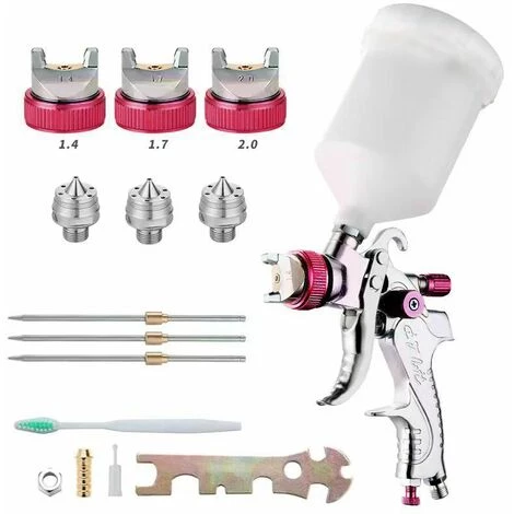 - 【Avec trois buses de fluide】: Équipées de 3 buses (diamètre du trou de pulvérisation: 1,4 / 1,7 / 2,0 mm), vous pouvez choisir celle qui vous convient pour vos différents besoins de travail et la meilleure couverture uniforme.