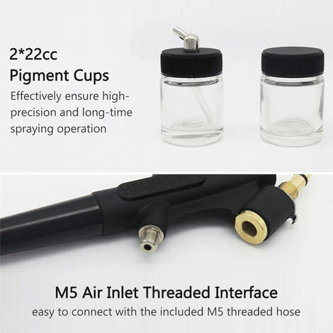 Le kit aérographe de type 1 avec interface filetée d’entrée d’air M5, facile à connecter avec le tuyau fileté M5 inclus.