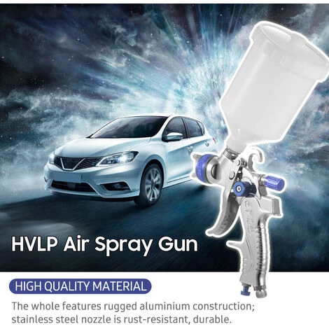 Pistolet pulvérisateur à alimentation par gravité HVLP (haut volume basse pression), bien fait, pratique, utile, peut contenir diverses peintures pour l’apprêt de voiture, la fabrication de modèles, la peinture de surface de meubles, la peinture murale, l’artisanat d’art, la peinture automobile et plus encore. Rendez votre travail de peinture plus facile, efficace !