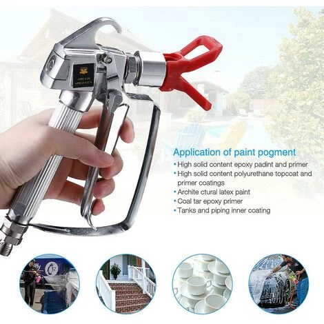 décrire : le verrou de sécurité qui s’engage avec le pouce vous permet de verrouiller la poignée pour plus de sécurité lorsque vous ne pulvérisez pas. Convient pour pulvériser une variété de revêtements, y compris les apprêts, les teintures, les vernis et le latex.