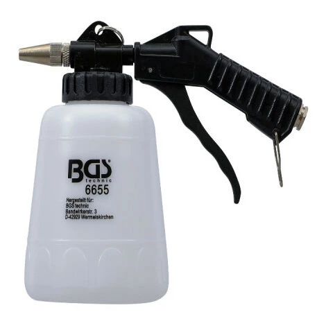 Pistolet de sablage BGS – 6655, sert à éradiquer les impuretés sur une surface précise, en métal, en bois, etc. Avec des agents de sablage à la soude, les tôles ne sont pas chauffées ni déformées.