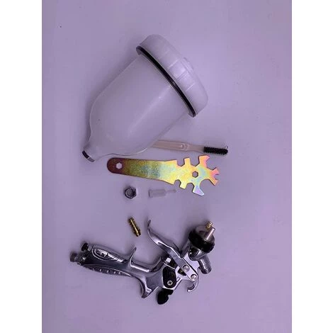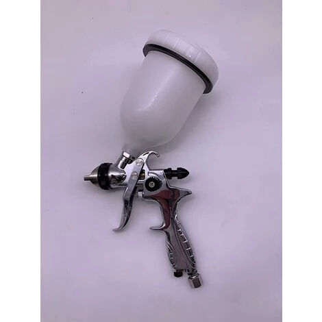 Pistolet professionnel avec corps en acier et aluminium. R�servoir sup�rieur en nylon 600 cc. Connexion rapide. Ventilateur 160 – 225 mm. Ajustement multiple. Convient aux buses de 1,4 – 2,0 mm. – 3/6 Bar -170-320 lt. min. – Pas de 1,7 mm.