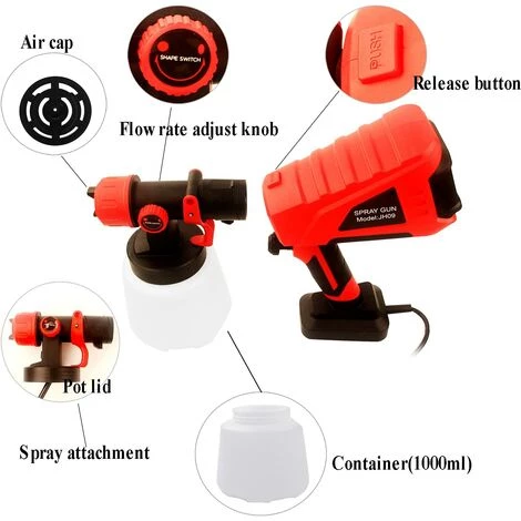 Le pulvérisateur de peinture sans air haute capacité est livré avec un récipient détachable de 1000 ml et un cordon de 1,4 mètre. Il vous permet de le transporter facilement et de le peindre sans le recharger fréquemment.