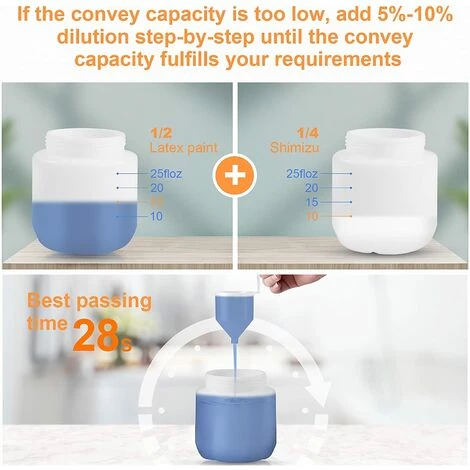 【Nettoyage facile et conception détachable】 Toutes les pièces de la machine sont détachables, vous pouvez donc la nettoyer facilement. Avec une tasse de viscosité pour mesurer la viscosité de la peinture. Brosse de nettoyage and Goupille de nettoyage, pratique pour nettoyer et laver la buse.