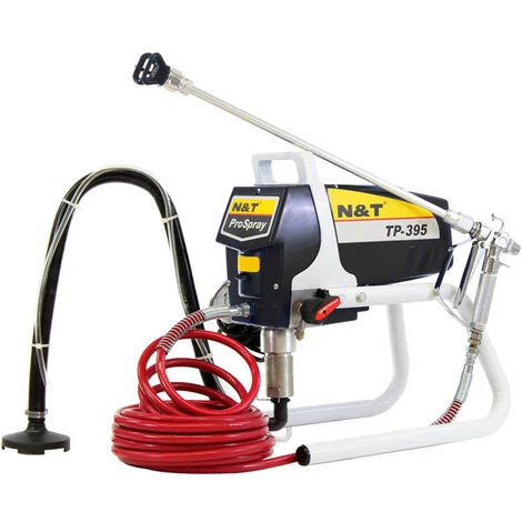 Máquina pulverizadora de pintura modelo TP-395 SIN AIRE Especificaciones Tensión nominal / frecuencia: 220v / 50Hz. Potencia de motor: 1050W. Flujo máximo: 2.1L/min. Accesorios: Pistola de aire: 1 pistola. Tubo de alta presión: 12m. Tubo de succión.