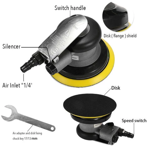 HAPPYSHOPPING Machine De Ponçage De Machine De Vibration De Sable De Machine A Papier De Verre D’outil A Main Pneumatique Ronde De 5 Pouces