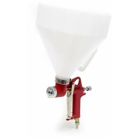 Un grand entonnoir en plastique robuste offre une capacité suffisante, afin d’étaler facilement et sans grands efforts, des matériaux comme le plâtre, les masses plastiques, le papier peint ingrain, crépi d’armature, crépi de sable quartz jusqu’à 6 mm, du quartz sec jusqu’à 8 mm, l’enduit, crépi intérieur et extérieur.