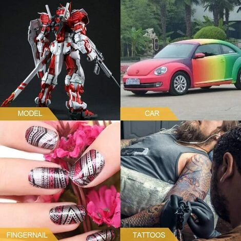 Convient aux fluides de couleur : pigments d’aquarelle, encres et colorants, acryliques, uréthanes automobiles, laques et émaux. (Non inclus)