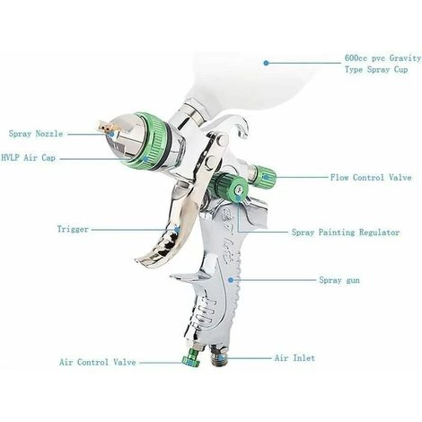 3. La technologie de grande capacité et basse pression enduit la peinture avec une force faible pour éviter les éclaboussures de peinture, le Contrôlede la gachette et la conception de fluide ajustable pour minimiser les éclaboussures.