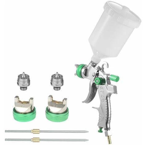 Pistolet pulvérisateur à alimentation par gravité HVLP (haut volume basse pression), bien fait, pratique, utile, peut contenir diverses peintures pour faire l’apprêt de voiture, la fabrication de modèles, la peinture de surface de meubles, la peinture murale, l’artisanat d’art, la peinture automobile et plus encore. Rendez votre travail de peinture plus facile et plus efficace !
