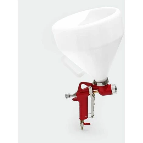 La pression de l’air nécessaire à la projection vient de l’alimentation en air comprimé. Ce pistolet s’adapte parfaitement aux grandes surfaces de travail. Un grand entonnoir en plastique robuste offre une capacité suffisante, afin d’étaler facilement et sans grands efforts, des matériaux comme le plâtre, les masses plastiques, le papier peint ingrain, crépi d’armature, crépi de sable quartz jusqu’à 6 mm, du quartz sec jusqu’à 8 mm, l’enduit, crépi intérieur et extérieur.