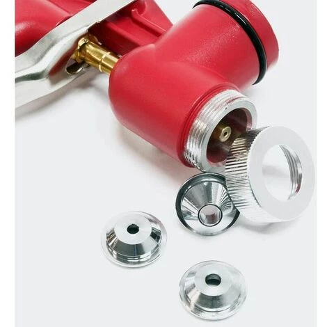 Le pistolet pour crépis polyvalent est équipé de 3 buses interchangeables: Ø 4,6 mm (3/16“), Ø 6,3 mm (1/4“) et Ø 8 mm (5/16“).