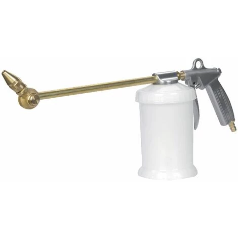 Pistolet de nettoyage à air comprimé avec buse rotative à 360° et réservoir en plastique de 0,7 litre Avantages: Avec crochet de suspension Avecune buse rotative de 360°avec un faisceau réglable Dosage réglable en tenant la poignée Avec unréservoir en plastique de 0,7 litres Convient pour: La pulvérisation d’agents de nettoyage à froid, de dégraissants et d’huiles de pulvérisation Nettoyage du moteur