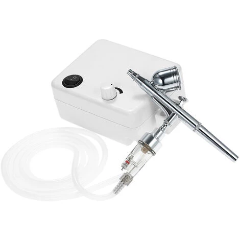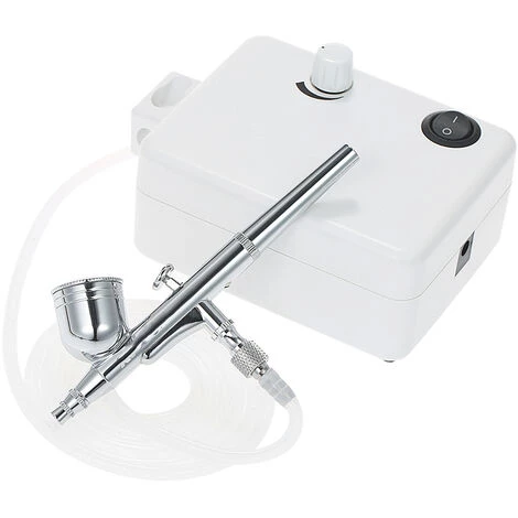 Comprend un compresseur d’air portable, un tuyau à air, un aérographe à double action, un mini-filtre à air et un support.