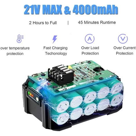 Batteries à charge rapide – Deux batteries Li-Ion de grande capacité de 4,0 Ah et un chargeur rapide permettent au puissant pistolet de pulvérisation électrique HVLP de fonctionner en continu. Une charge rapide de 2 heures garantit que la batterie est toujours prête à fonctionner.