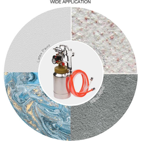 Large application — Kit de pistolet de pulvérisation de pot de pression, le pot de pulvérisateur de peinture convient à la peinture commerciale et à la peinture de grand volume, y compris l’automobile, à base d’huile, au latex, vernis, laques, apprêts, revêtements de bois, adhésifs, etc.