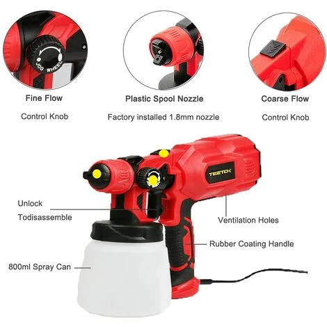 Pistolet pulv¨¦risateur, avec r¨¦cipient haute capacit¨¦ de 800 ml, ce sera votre meilleur pulv¨¦risateur de peinture ¨¦lectrique pour tables, chaises, cl?tures, murs int¨¦rieurs et travaux manuels.