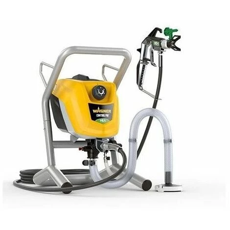 Pompe Airless a piston pour de moyens a tres grands projets – Dotée de la technologie innovante High Efficiency Airless – Equipée d’une buse produit fluides Pro, d’une buse peintures murales Pro 517, pistolet hybride, HEA kit filtre – Débit de produit 1,25 l/min – Pression : 110 bar – Puissance : 550 W – Longueur de tuyau : 9 m.
