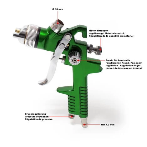 Ce pistolet à peinture professionnel aux effets brouillard limités se distingue par son haut rendement, ses effets brouillard limités, sa faible consommation d’air et sa bonne vaporisation. Grâce á la technique HVLP (High Volume Low Pressure / Grand Volume Basse Pression) vous économisez environ 35% de matériel de peinture. A une époque où on attache de plus en plus d’importance à l’environnenment et aux frais, on met désormais, dans les techniques de traitement de surface, le point fort sur des produits à faible dispersion (effets brouillard réduits), non polluants et économisant la peinture. Pratiquement pas d’overspray!
