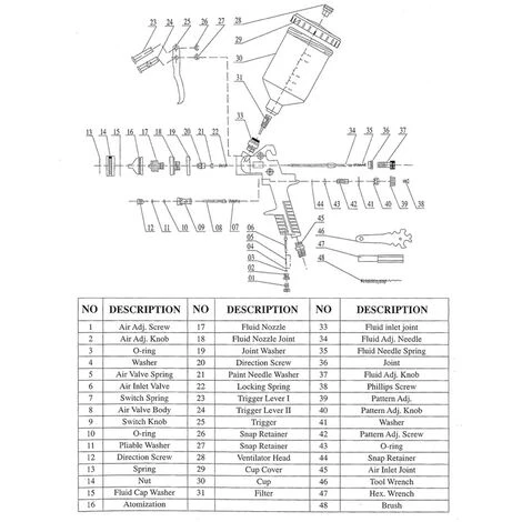 | pistole propriété | Divergence du faisceau 280 mm, Consommation d’air 250 l/min à 2.5bar, Pression d’entrée de l’air 2.5 – 3.5 bar, Kit de buse / Système d’aiguille inoxydable |