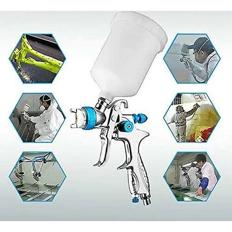 Avec 3 buses de fluidePistolet pulvérisateur à alimentation par gravité HVLP professionnel avec 3 buses de fluide 1,4 mm, 1,7 mm, 2,0 mm. Matériau de qualité supérieure et grande capacitéFait d’un capuchon d’écoulement en cuivre, d’un corps en alliage d’aluminium et d’un noyau de valve en métal, résistant à l’usure et à la corrosion. Et il est équipé d’une bombe aérosol de 600 cc. Gagnez du temps et de l’effortConception à 15 trous, grand jet de ventilateur, atomisation fine, de sorte que la couleur puisse toucher chaque centimètre du coin. La technologie basse pression à haut volume applique la peinture avec moins de force, peut empêcher les éclaboussures de peinture, tout en économisant 20 % de la peinture. Soupape de contrôle de débit facile à utiliser, conception antidérapante, étanchéité réglable. Gâchette du pistolet pulvérisateur, fonctionnement flexible, bonne prise en main, traction douce, confortable à utiliser, le fonctionnement de longue durée n’est pas fatigué. Large applicationCe pistolet pulvérisateur peut être utilisé pour l’entretien et la réparation de voitures, de meubles, de murs, de cuir, etc., et peut également être utilisé pour la peinture d’art et la production artisanale. Le pistolet pulvérisateur HVLP léger et portable facilite l’utilisation.